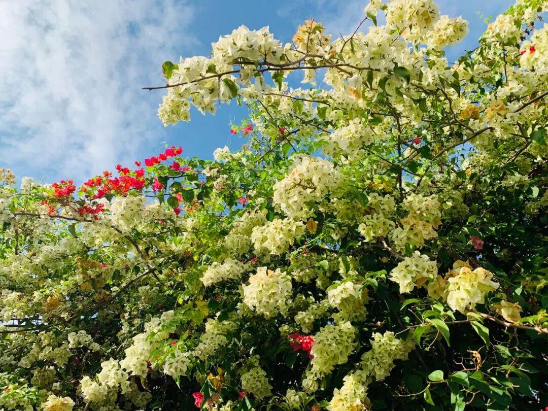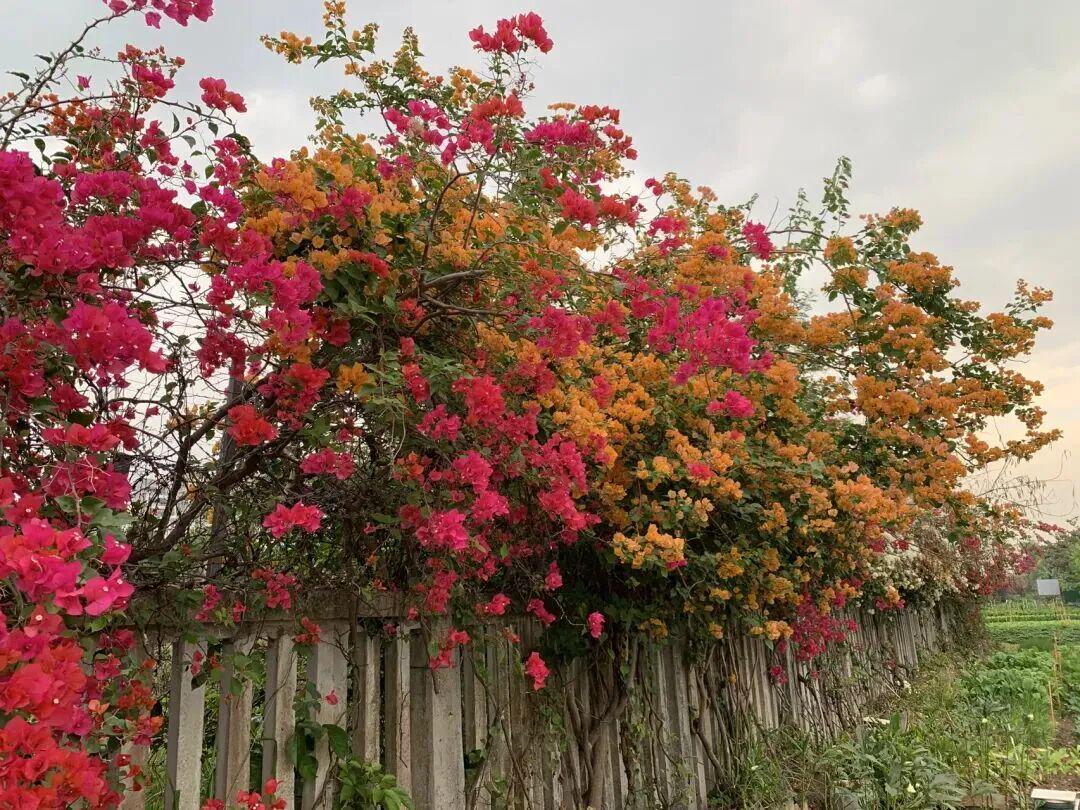 三角梅当作北海市花,每年的四、五月和十一、十二月为盛花期,在北海各条骨干谈和住户的房前屋后遍地可见。近几年,我市还把三角梅莳植到了高铁沿线,把市区的铁路打酿成了最好意思的高铁路段之一。