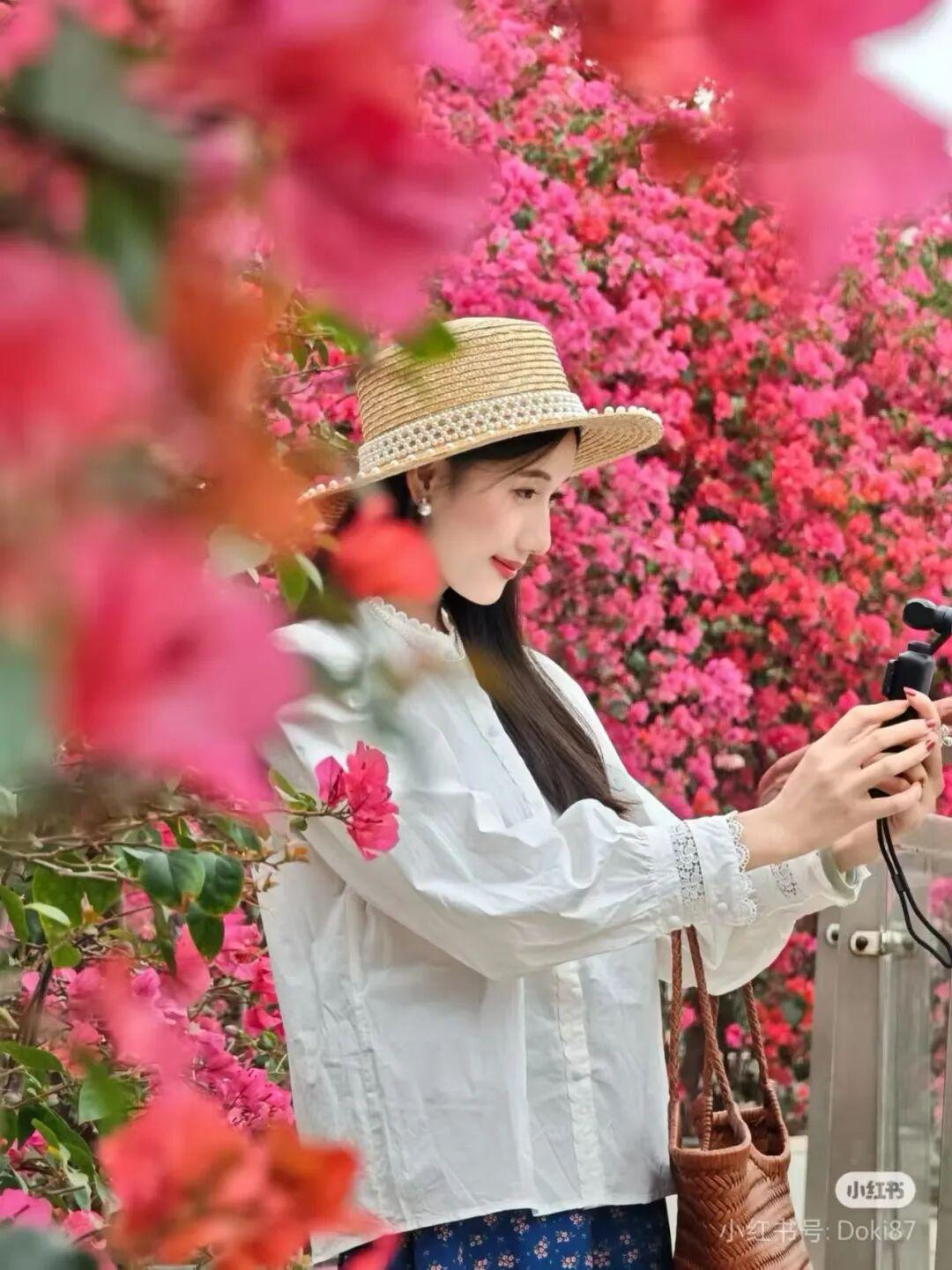 身着精雅文艺的衣衫,在花影间慢步穿行,清风拂过,花枝轻摇,顺手定格就是一帧帧诗意画卷。