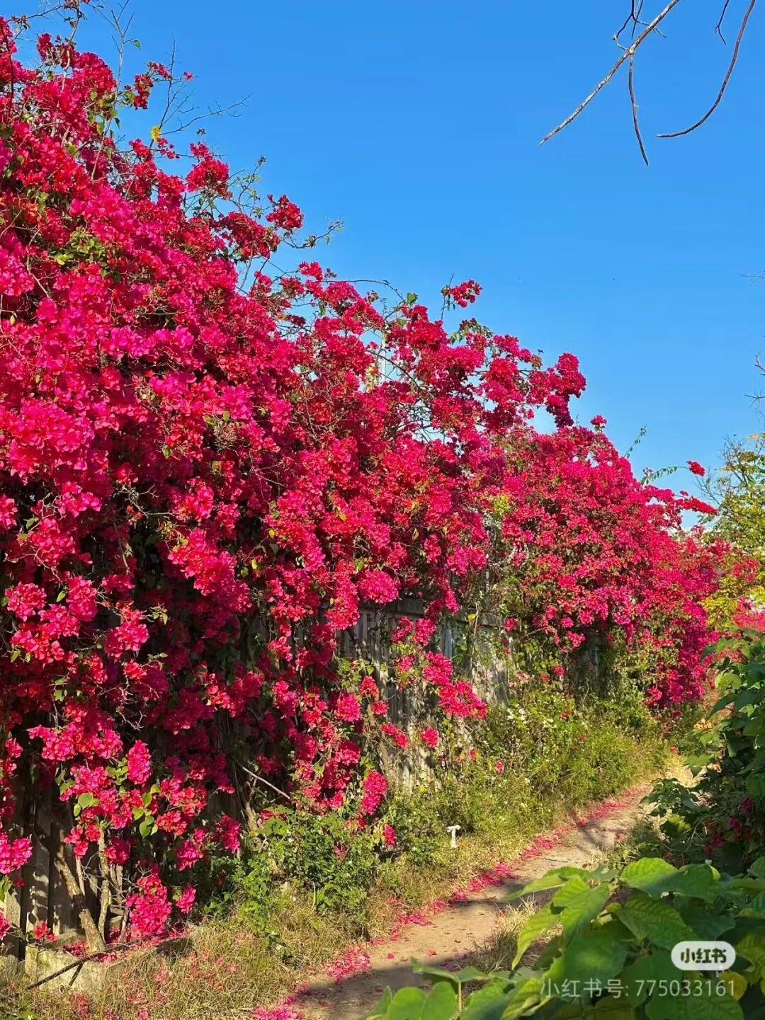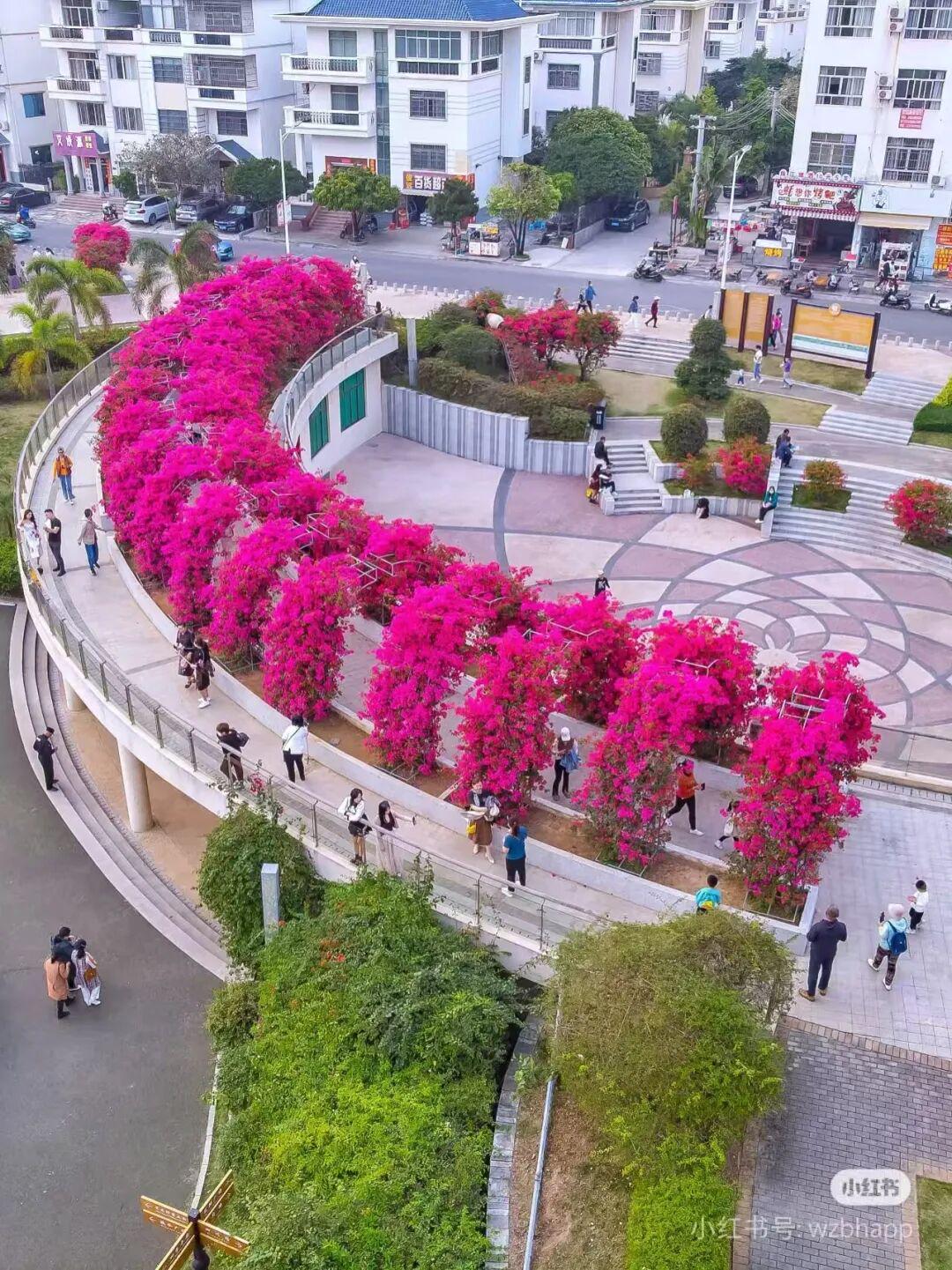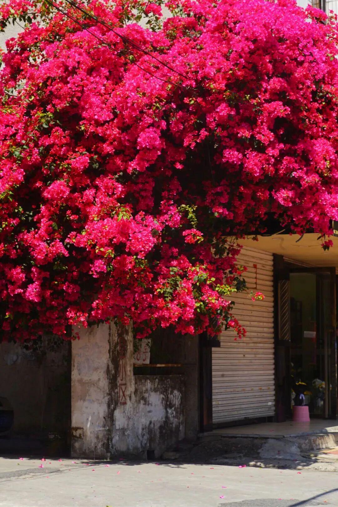 上海路铁路桥旁,那边的三角梅瀑布花墙愈发记号。花枝流泻而下,宛如流动的花海,颠簸东谈主心。